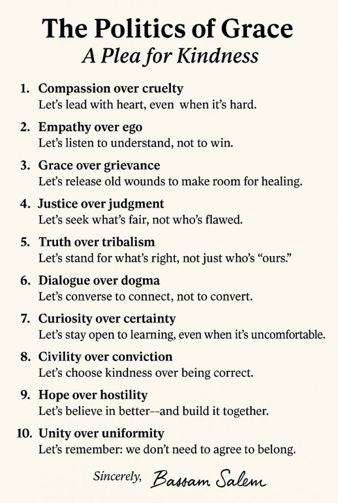 I believe we need a reset—a return to grace, empathy, and dialogue.